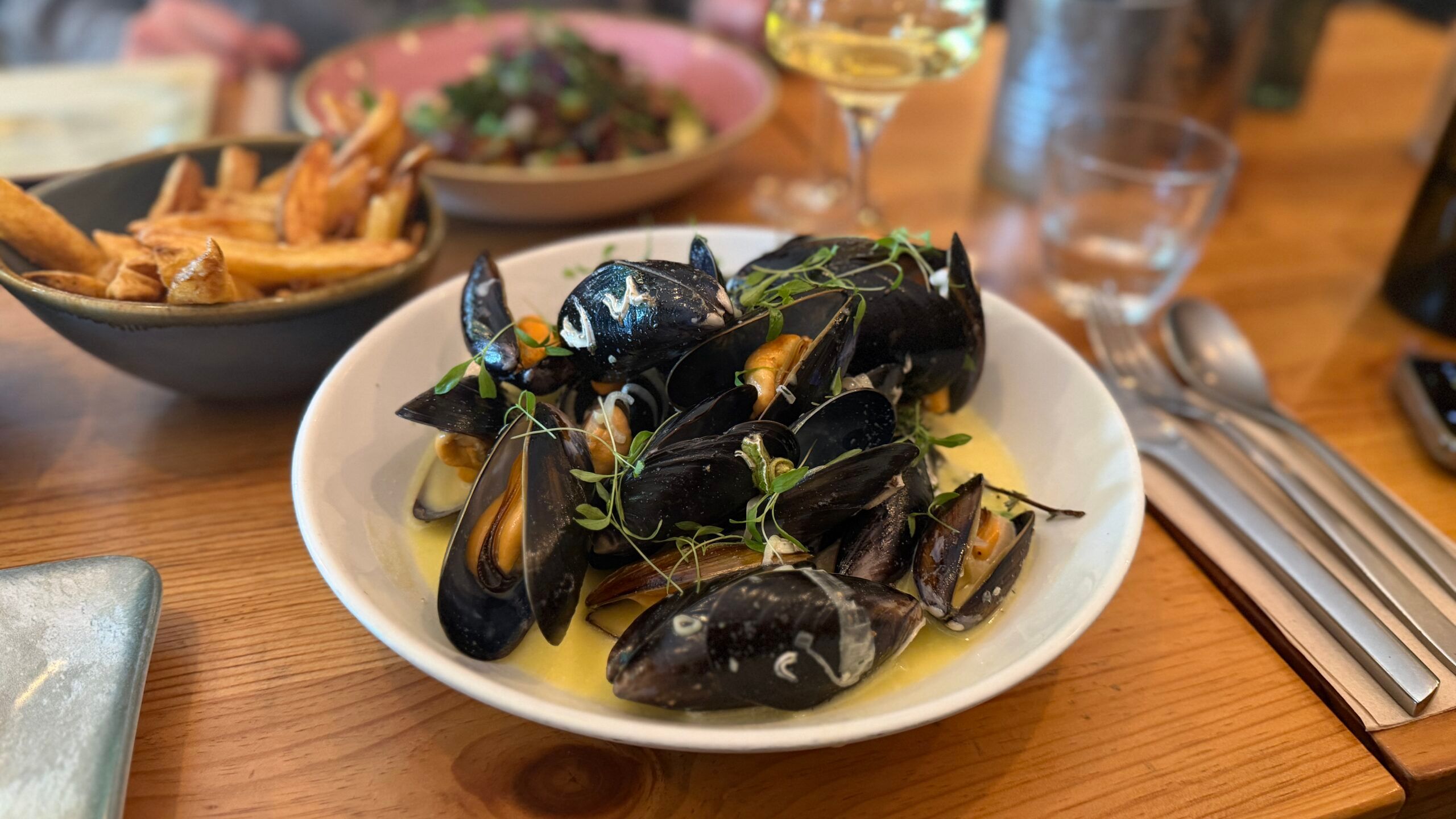 And of course we had planned ahead to mop up that delectable creamy sauce with a side of frites. Honestly some of the finest, skin-on, crunchy chips I’ve ever had. I would go back for them alone. Served alongside a delightful saladette, this was the lunch of champions.