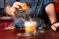 The smoke comes from Monkey Shoulder’s Smokey Monkey whisky. It tastes oaky yet still creamy and smooth with a hint of vanilla, which matches a host of notes from lemon juice, elderflower and cucumber, and finally a splash of Calvados. The flavours come through in every sip, and it’s a joy to drink delivering tart, smoke and sweet all in one.