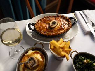 The menu is a confident mash-up of British comfort classics and French brasserie, with a nod to nose-to-tail cooking. Think pies to share, mince and marrow on toast, and nostalgic, 70s-style snacks – all done with real finesse.