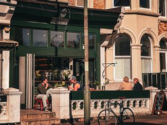 cafe with terrace in Hove. Diners enjoying morning coffee